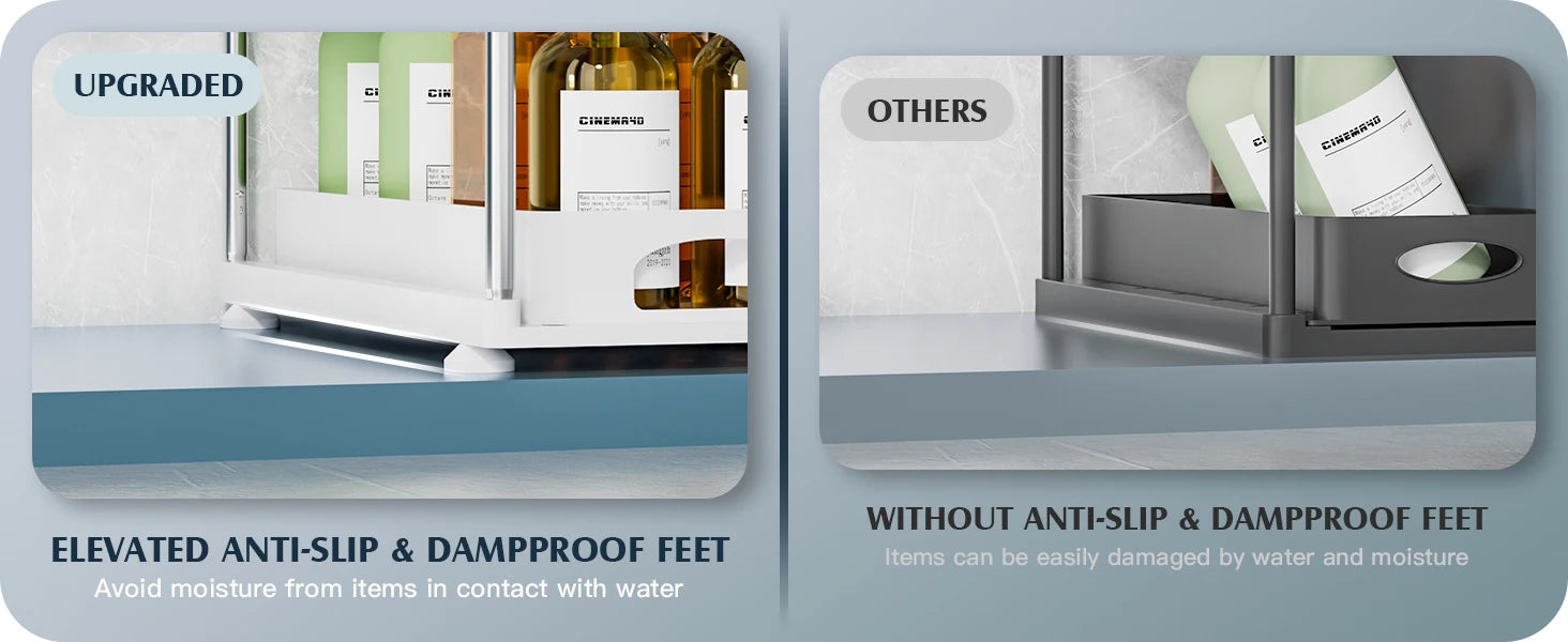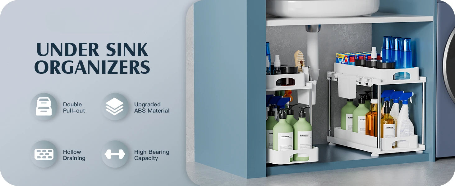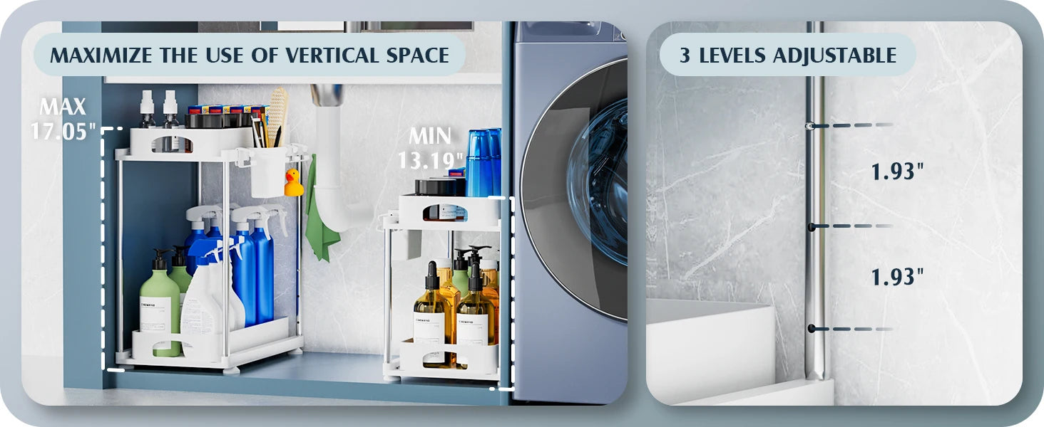 2 Pack Under Sink Organizers and Storage, Double Sliding Kitchen Cabinet Organizer,2 Tier Height Adjustable Countertop Organizer