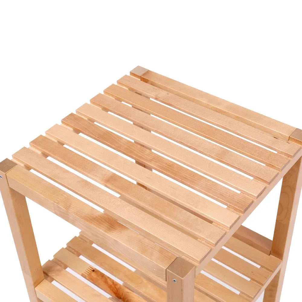 This wooden bathroom stand shelf is made of 100% birch material, has an excellent and beautiful texture, smooth surface, stable and strong carrying capacity