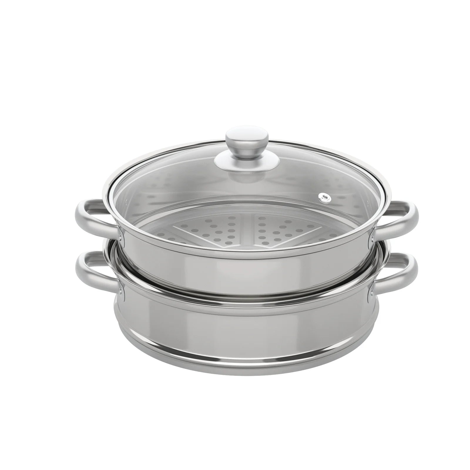 3 Tiers Stainless Steel Steamer 28cm Overlapping Steaming Pot Cookware Kitchen Soup Steamer Cooker Set Silver with Glass Lid