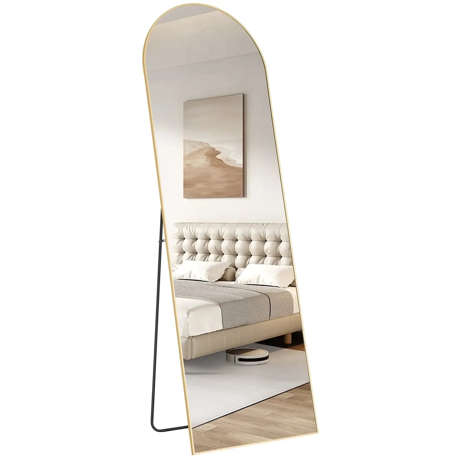 - 【ALUMINUM ALLOY FRAME】Embracing this remarkable full-length mirror is a robust aluminum alloy frame designed to resist rust and maintain its vibrant, lustrous appearance. Boasting a sleek 0.23" width on the front, it not only ensures longevity but also adds a touch of sophistication and modernity to any room.