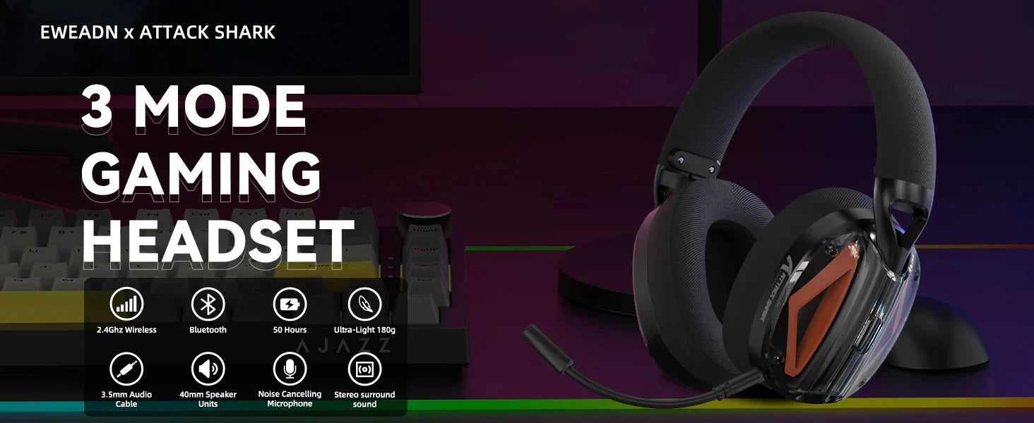 ATTACK SHARK L60 Ultra-Light Tri-Mode Gaming Headset Ultra-Light Tri-Mode Wireless Gaming Headset for PC/PS4/Xbox