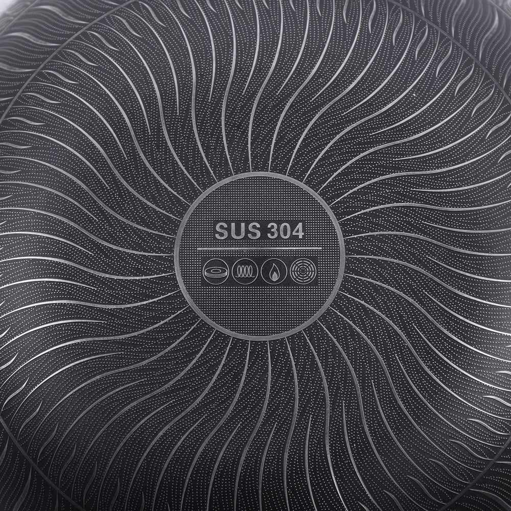 A 34cm Stainless Steel Non Stick Cooking Wok. It Has an Inner Pot Surface with Beautiful Non Stick Coated Honey Comb Pattern. Both Interior and Outerior Consist of Pattern Design. the Pot Also Includes with a Glass Cover Lid. Suited to Cook Meals of Many Kind, It Also Is Easy to Clean. Built with Sturdy Handle for Easy Handling