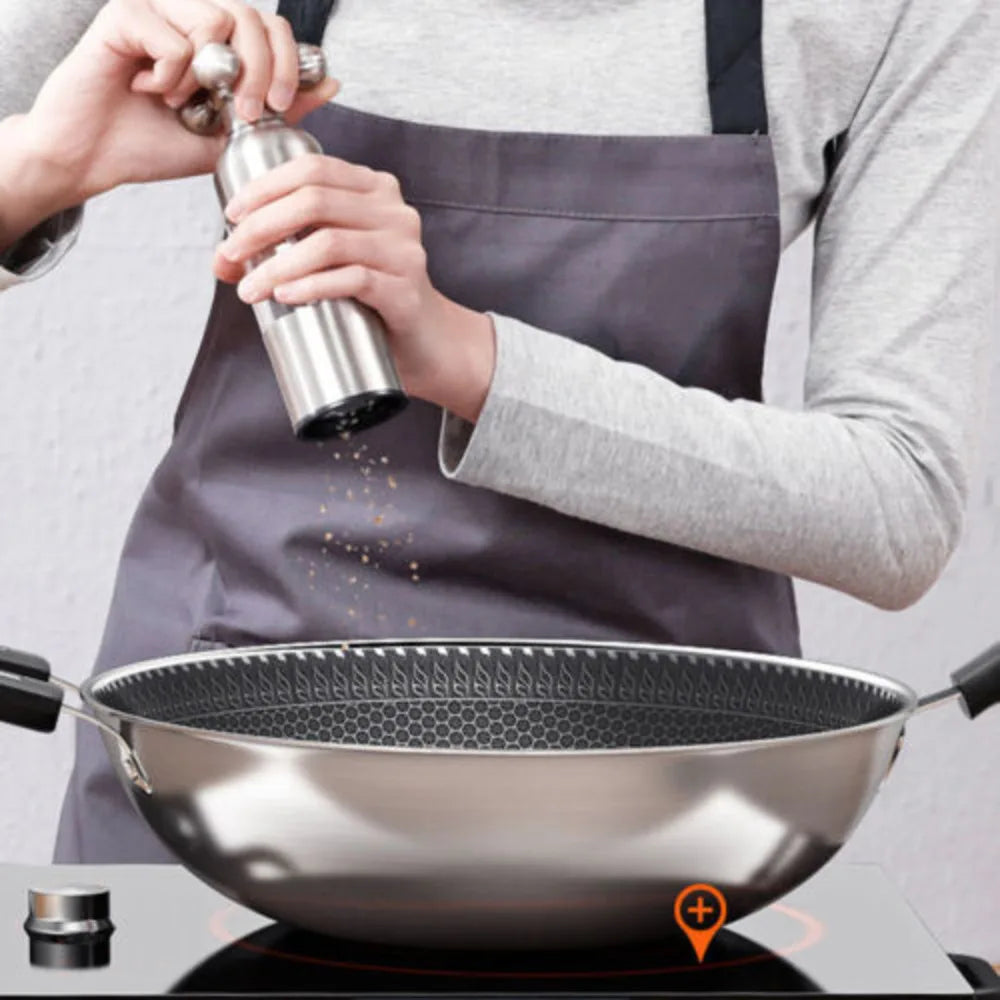 Non Stick Double Sided Screen Honeycomb Wok Stainless Steel Kitchen Frying Pan