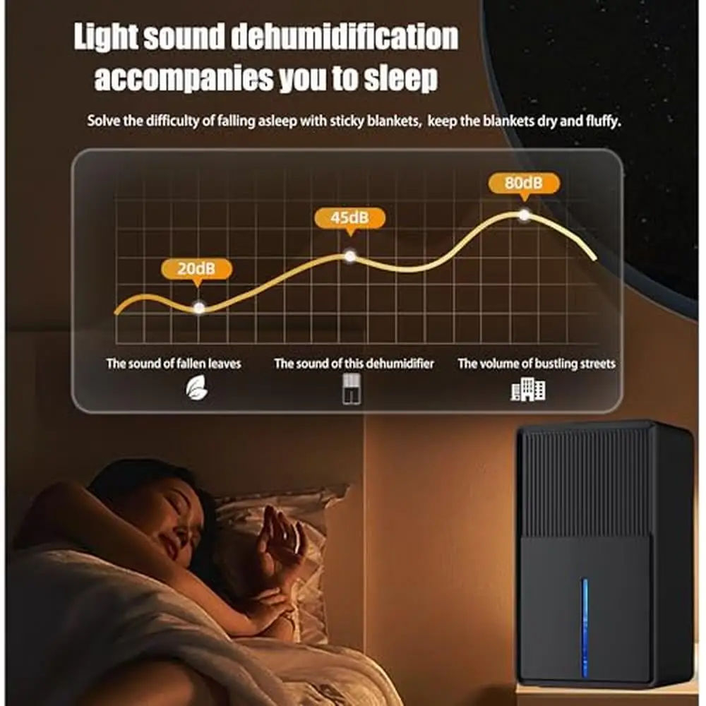 Flexible & Portable: Our dehumidifier design is compact and lightweight, very suitable for kitchen countertops, bathroom vanity tabletop, bedside tables, office desks, and small cabinet spaces, creating a more dry and comfortable living space.