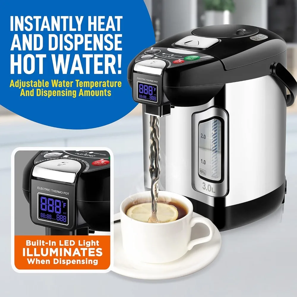 Digital Water Boiler and Warmer,Stainless Electric Hot Water Dispenser,LCD Display,Rotating Base,Keep Warm,Auto Shut Off