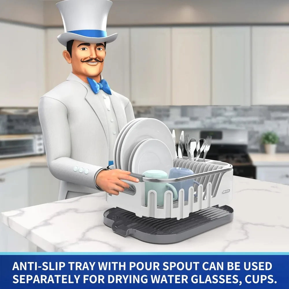 Dish Drying Rack for Kitchen Counter,Compact Dish Drainer with Drainboard,Utensil Holder and Cup Rack, Kitchen Drying Rack
