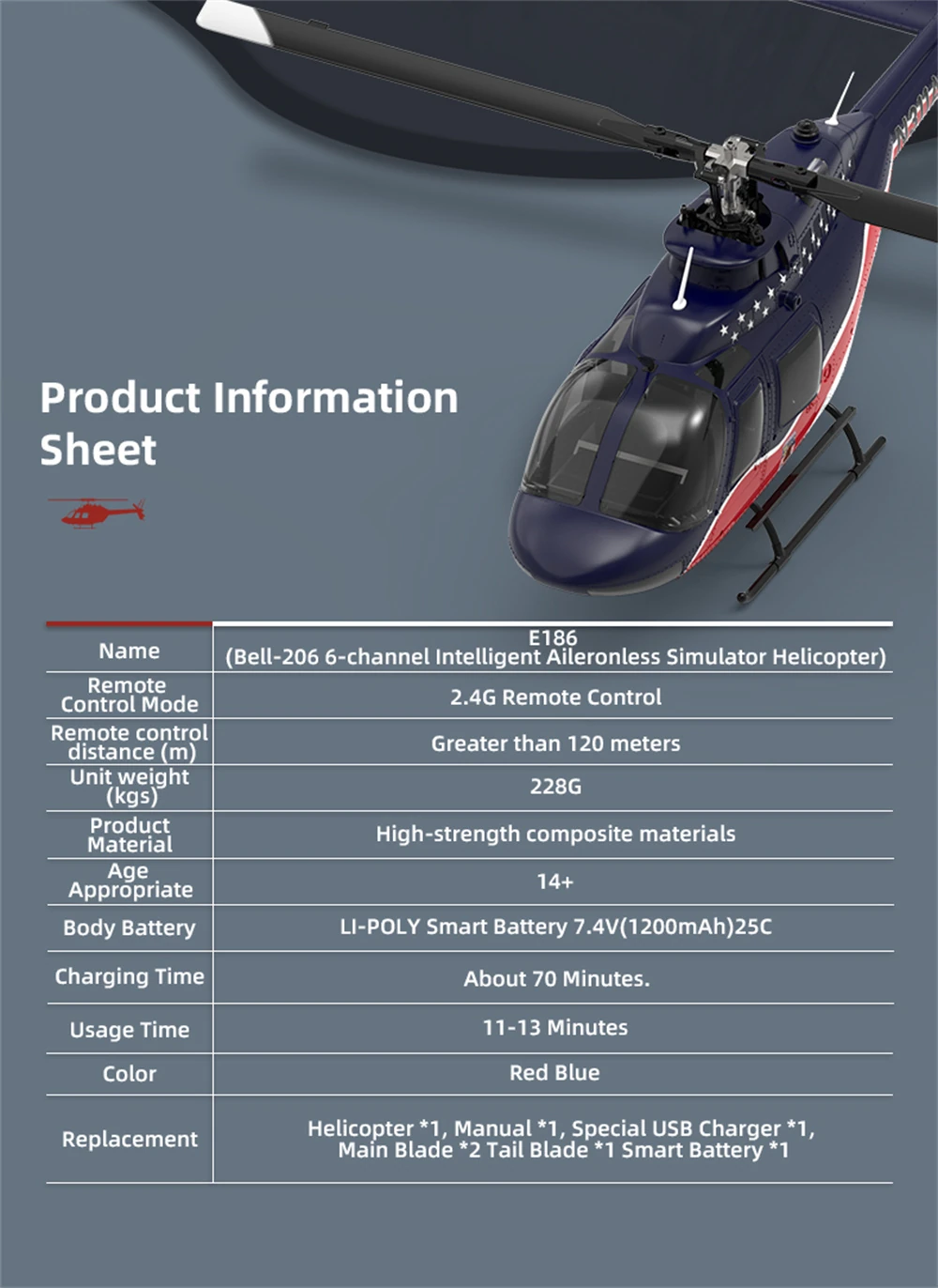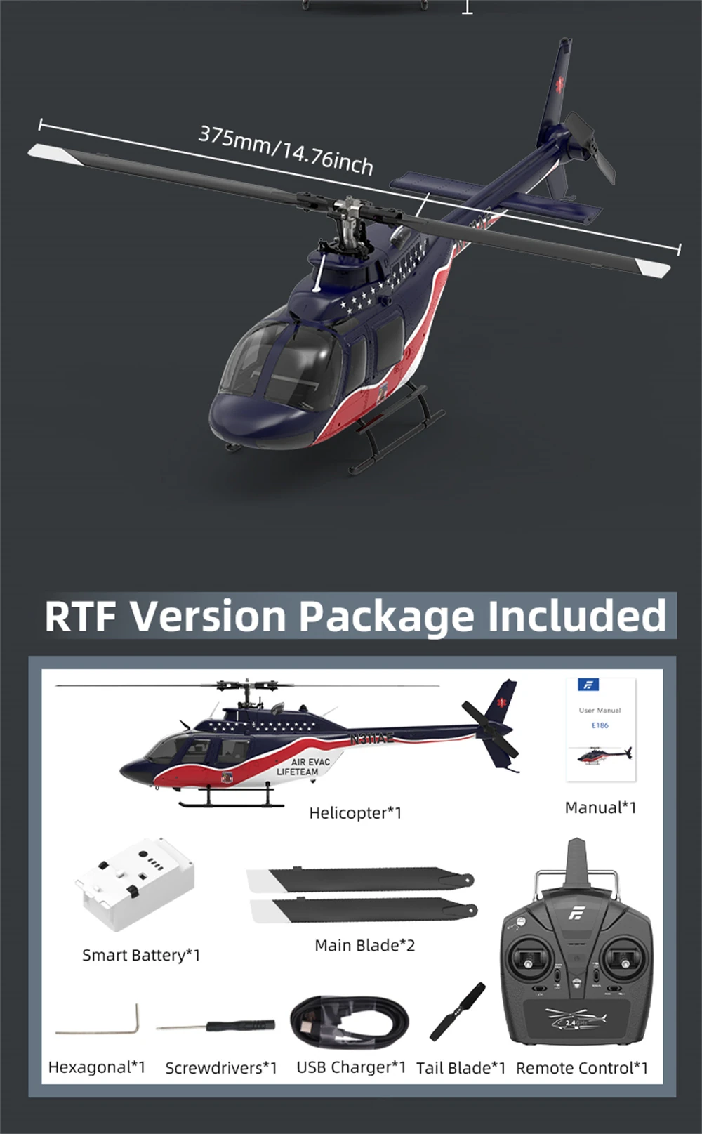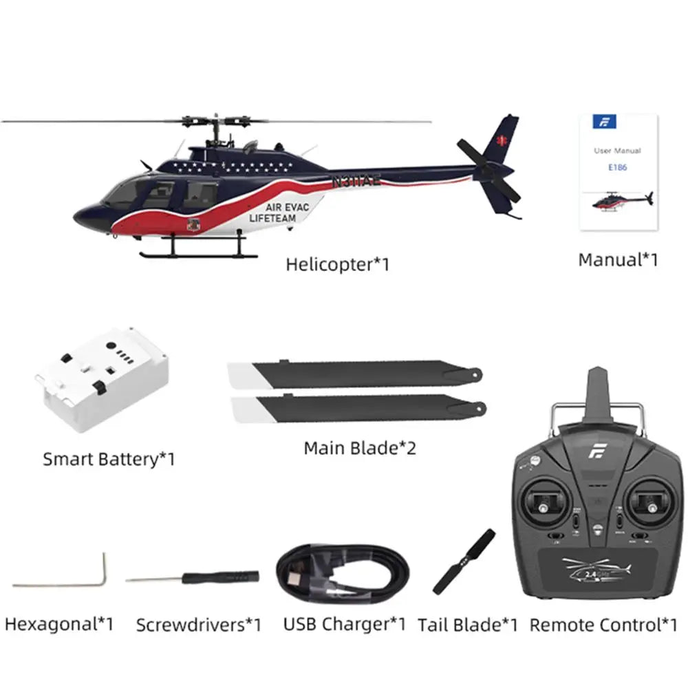 Eachine E186 Bell-206 2.4G 6CH 1/27 Scale Dual Brushless Motor Altitude Hold Optical Flow Positioning intelligent RC Helicopter
