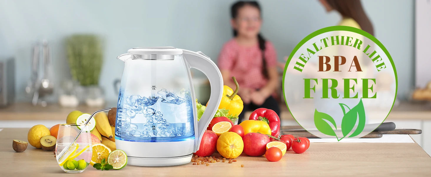 【EFFICIENT & POWERFUL PERFORMANCE】- Boil water quickly in 3 to 7 minutes with the CACHOO glass tea kettle's powerful 1500-watt heating element; Its 1.7 liter capacity prepares enough hot water for the whole family, so whether you're making tea, instant noodles or preparing water for cooking, enjoy fast, reliable performance that saves you time and energy;