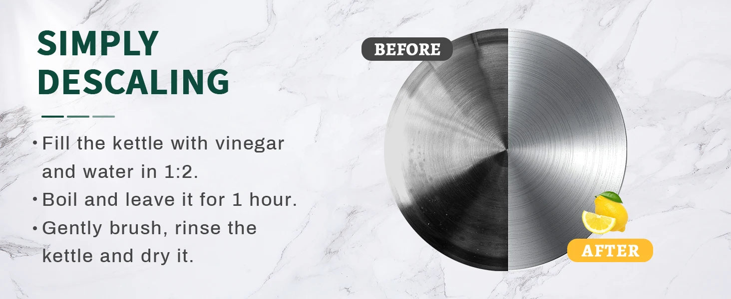 【SAFETY ASSURED】- This electric kettle has an automatic shut-off and boil dry protection to prevent scorching; The LED indicator light conveniently shows that the kettle is in use and adds a touch of elegance and functionality;