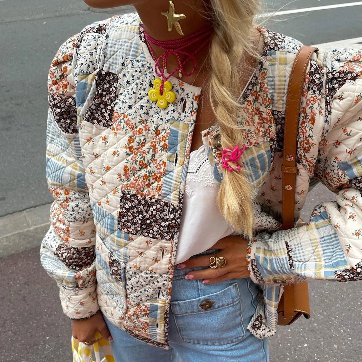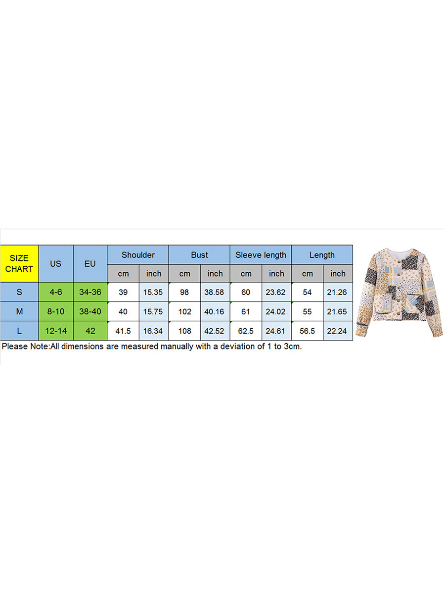 Women Fall Quilted Jacket Lightweight Floral Print Casual Long Sleeve Button Cardigan for Outwear Streetwear
