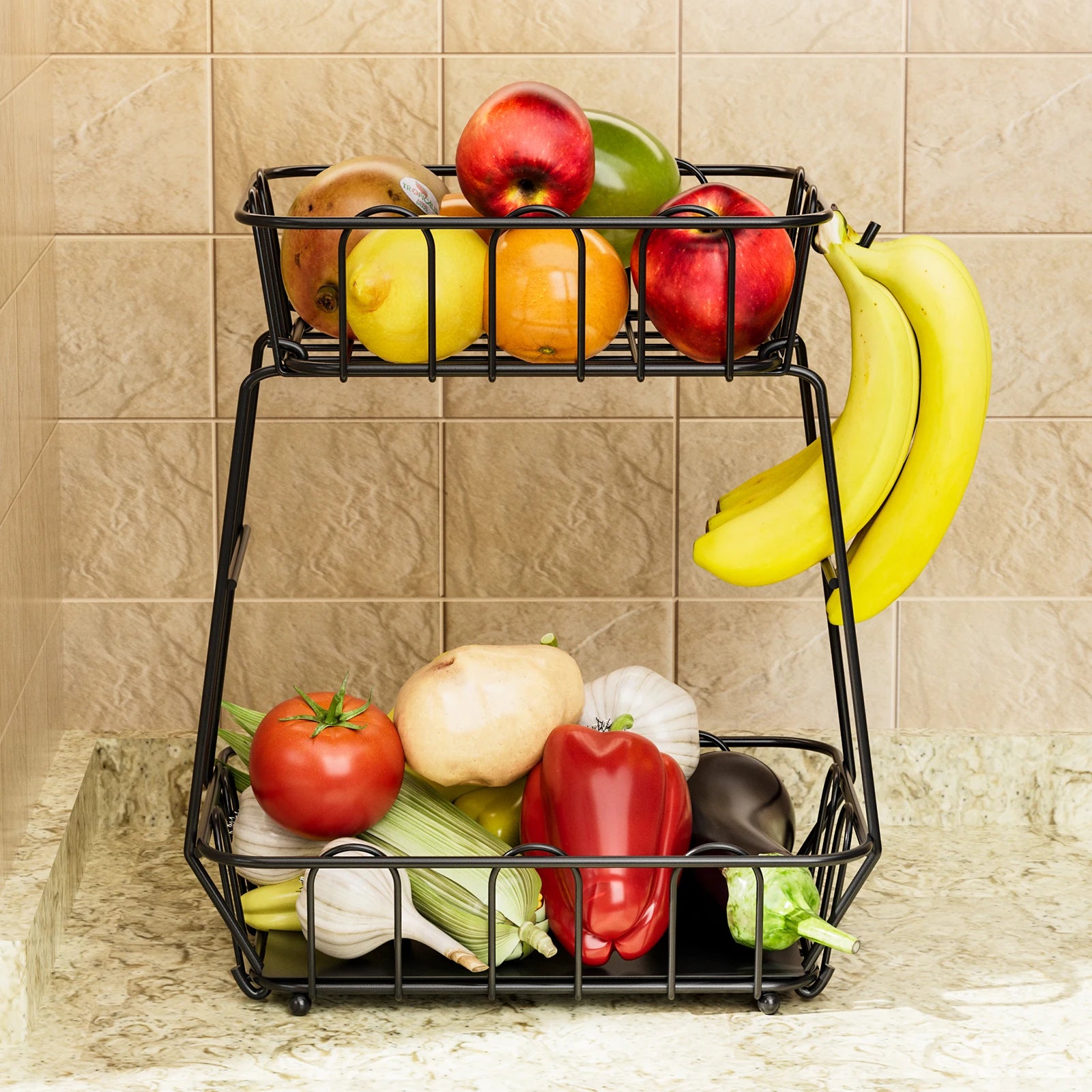 Fruit Basket,Metal Wire Storage Basket With Hooks,Saving Storage Rack,Stylish Kitchen Organizer In Space - Display Stand