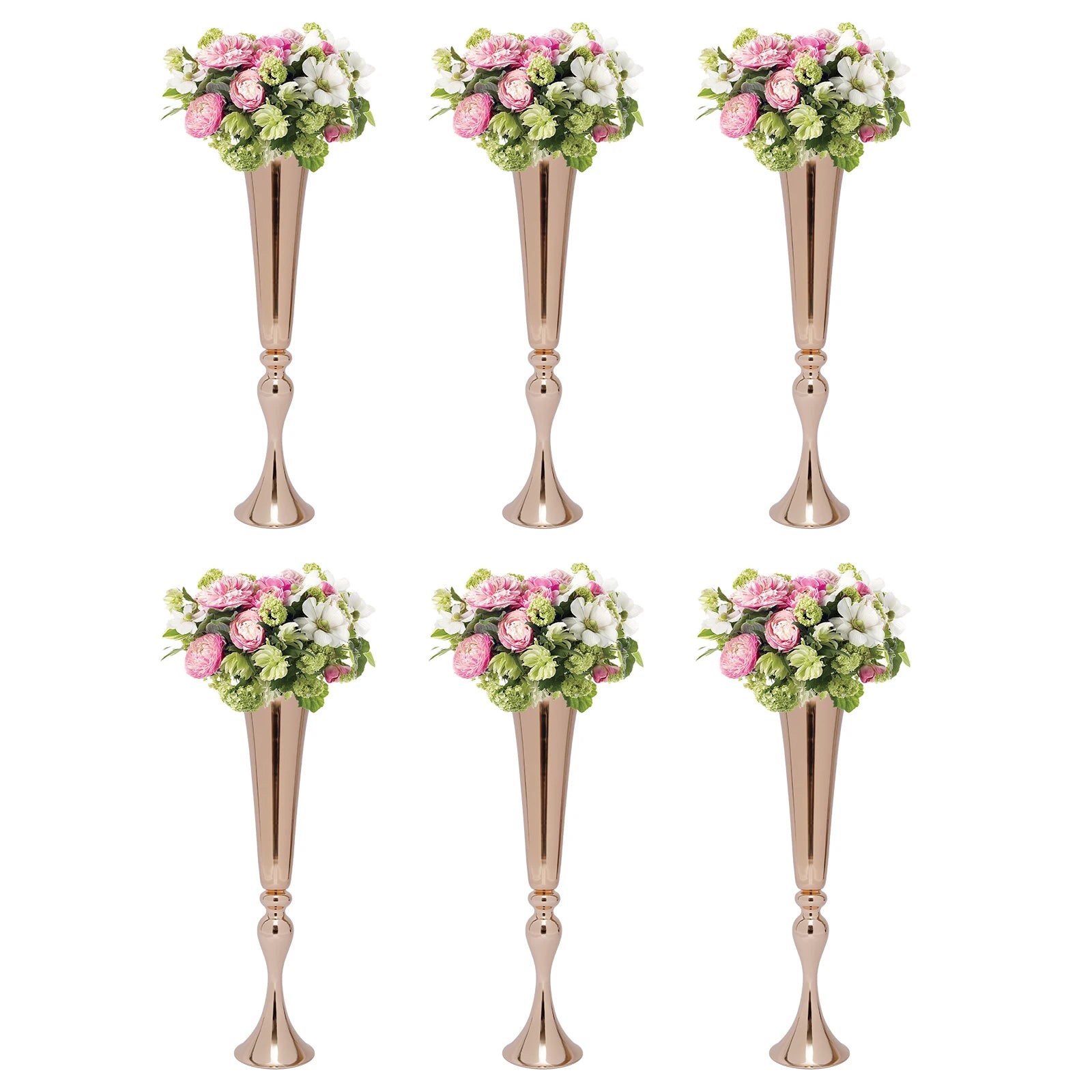 Golden Metal Table Flower Stand Vase 6Pcs Candle Holder 22.2" Tall Wedding Centerpiece Party Event Hotel Decoration