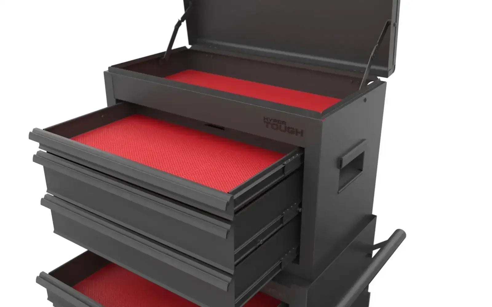 Introducing the 20-inch Hyper Tough Steel Tool Chest, a powerhouse of storage and organization tailored for your most demanding tasks. Boasting 5,820 cubic inches of storage capacity, this tool chest ensures that all your essentials are organized and easily accessible. Each drawer is equipped with ball-bearing slides with a 50 lb load capacity. Crafted from heavy-duty 23-gauge steel, this tool chest offers strength and durability. With an impressive maximum capacity of 400 lbs, you can store and organize a wide range of items. The powder-coated finish is resistant to scratches, chipping, and fading, ensuring that your tool chest remains pristine for years to come. This steel tool box is equipped with 4-inch by 1-inch casters for smooth and easy maneuverability. The 20-inch Hyper Tough Steel Tool Chest offers the perfect blend of superior storage capacity, uncompromising strength, and unmatched mobility.