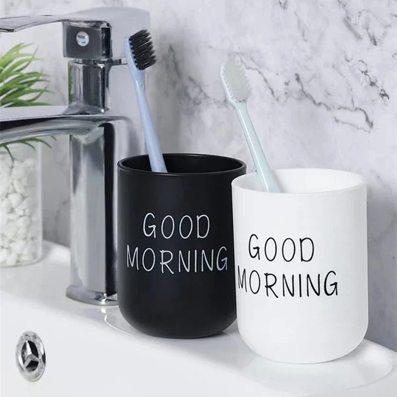 3.The toothbrushing cup is simple and creative, with the words "GOOD MORNING" printed on it, which can bring you a good mood in the lazy early orange morning.