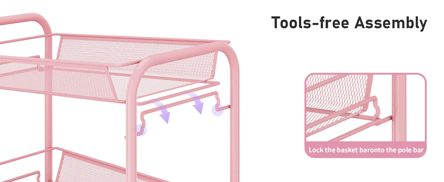 This utility cart don't need tools to install, so you can easily and quickly to assemble the cart, just need to snap the units together with a few minutes. 3 free side hooks for additional storage, like bath ball, wipes, etc. It will be more clear than putting in a drawer.