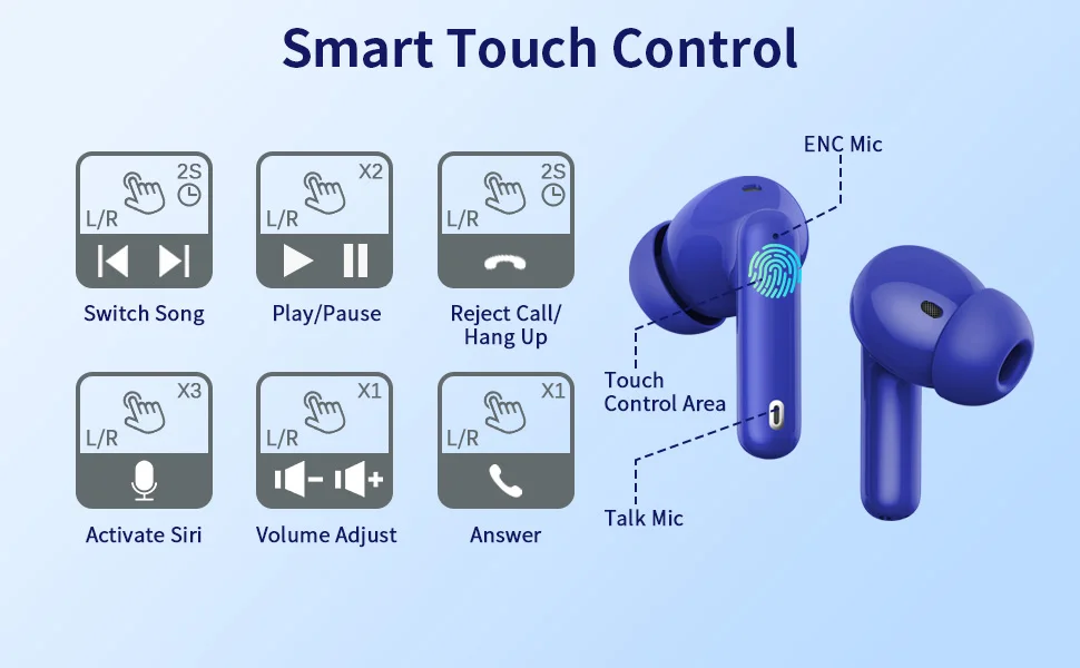Wireless Earbuds with Bluetooth 5.3, In-Ear Headphones Featuring 4 ENC Mics and 36 Hours of Playtime, LED Display Included.