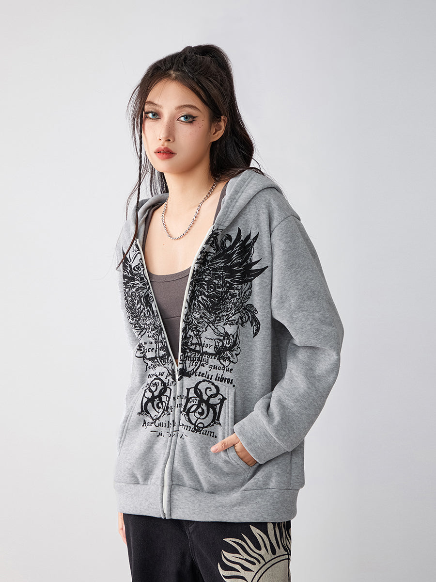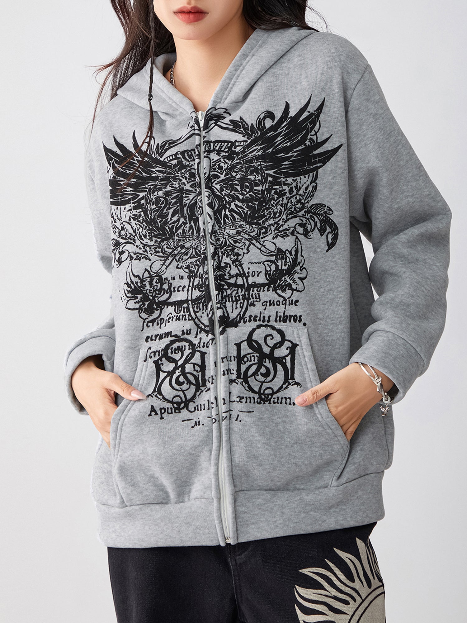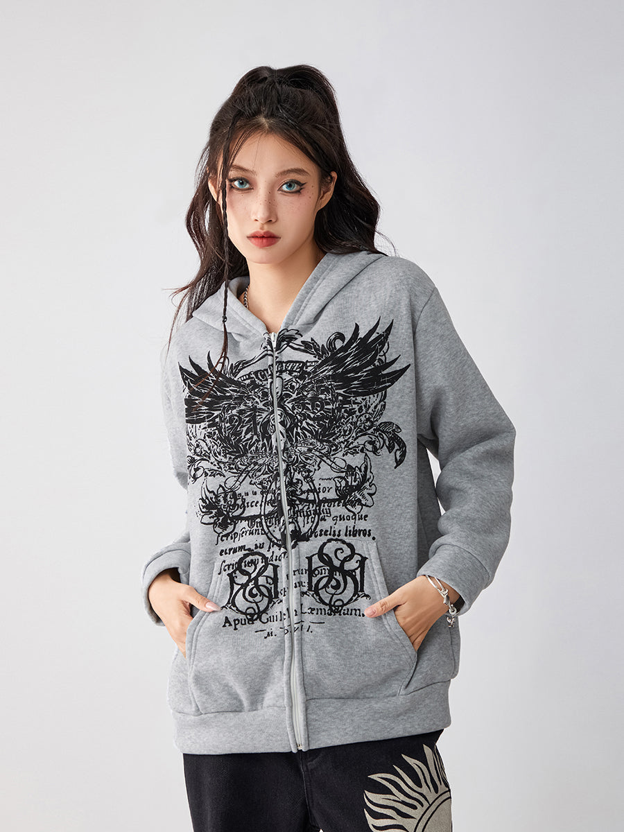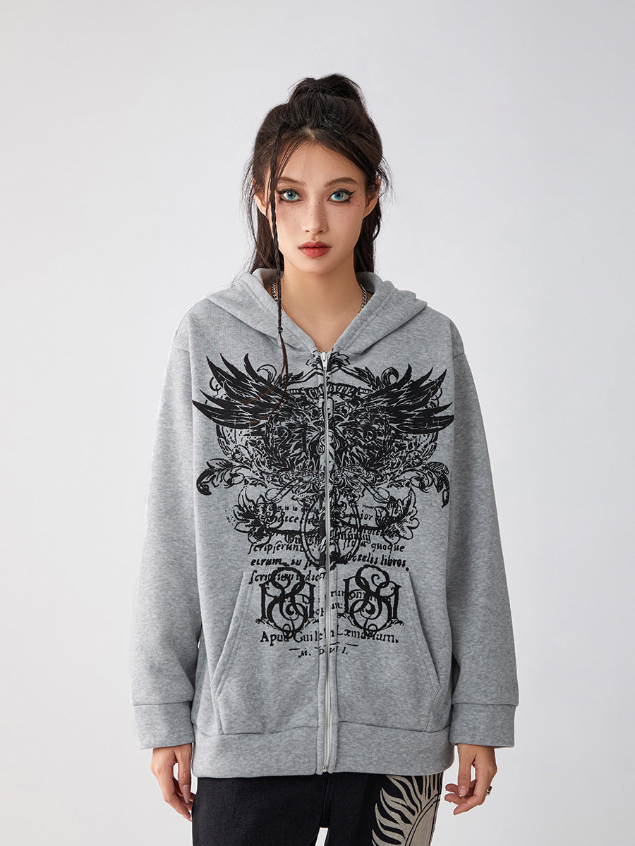 Women's Full Zip Hoodies Vintage Wings Print Long Sleeve Oversized Sweatshirts Grunge JacketsFeatures: