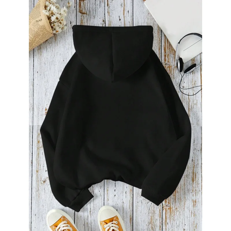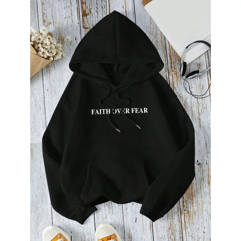 Women's hooded wool sweatshirt with slogan print, long sleeved top; Letter pullover hoodie, casual and fashionable