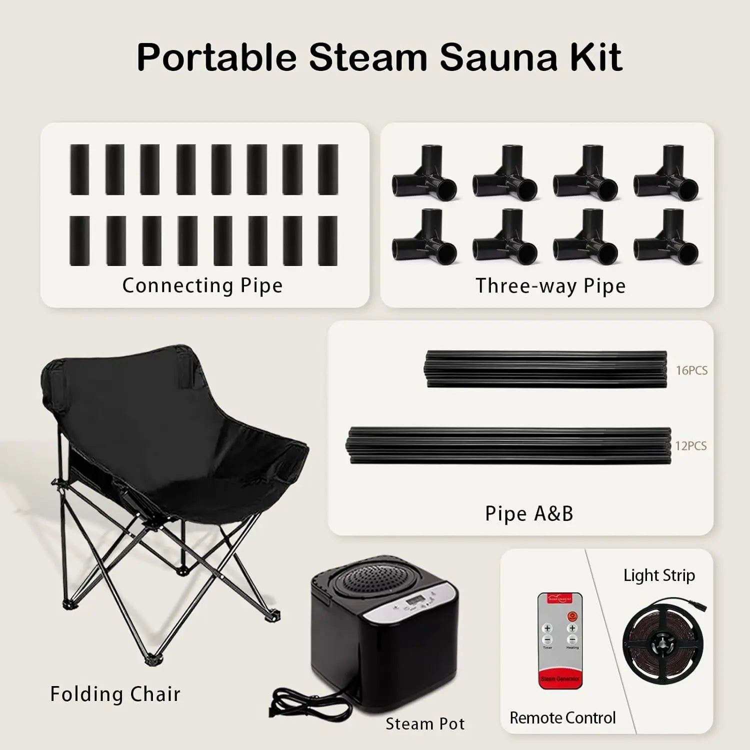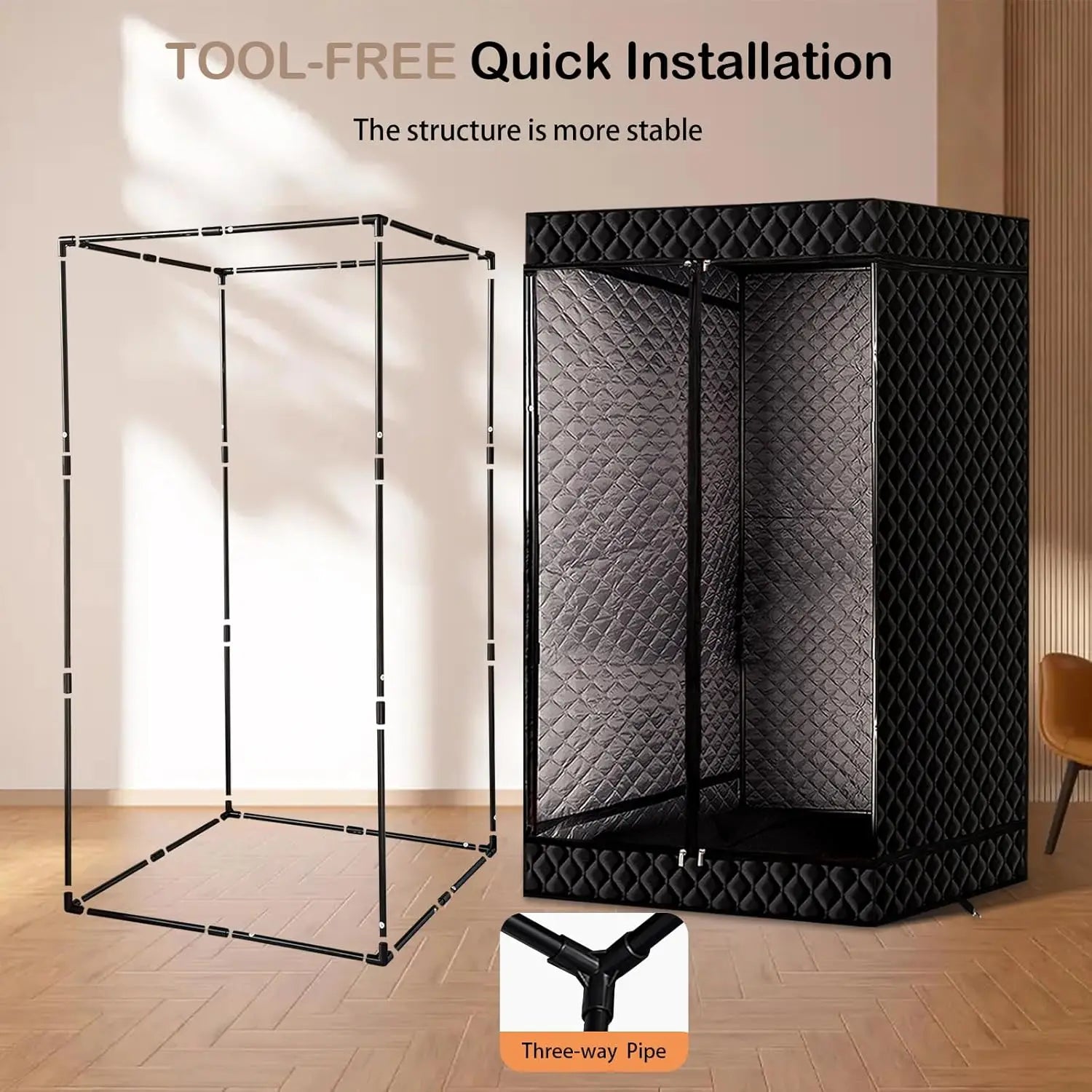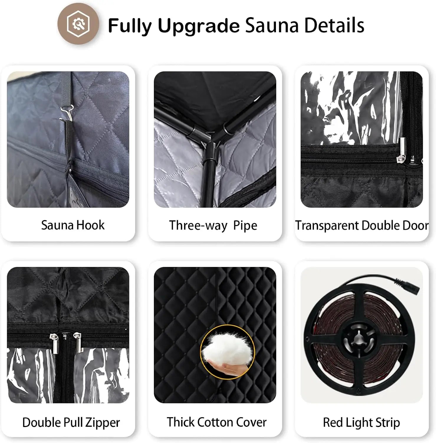 【Extra Large Size 40*40*75in】The oversized steam room is suitable for adults of different sizes. You can stand or sit in it. The steam tent is equipped with a waterproof folding chair, allowing you to enjoy the sauna more comfortably.